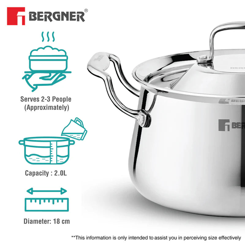18cm Diameter, 2.8L Capacity: This casserole/handi with an 18cm diameter and 2.8-liter capacity is perfect for preparing meals for 2-3 people, making it ideal for small families or gatherings