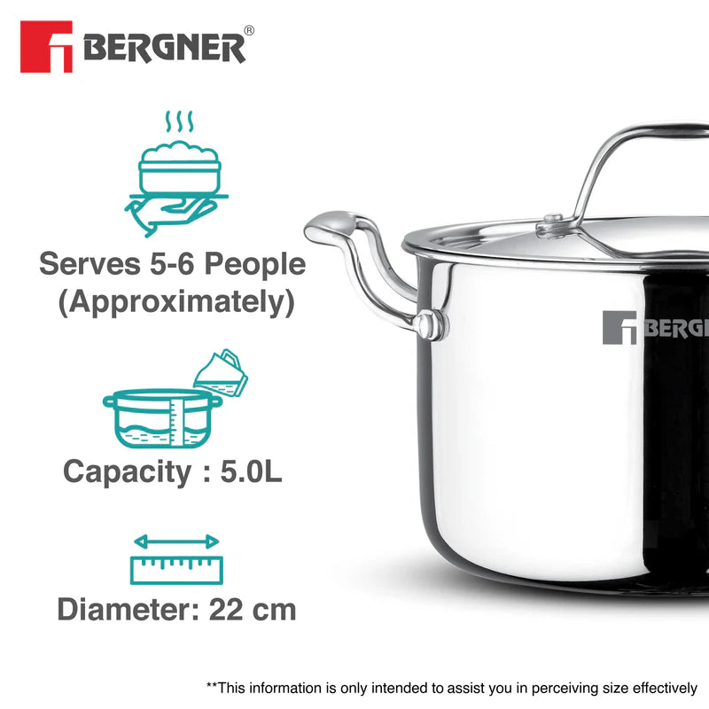22cm (5L) Triply Stock Pot with Lid: Ideal for soups curries, stews and more – comes with a matching stainless steel lid for efficient cooking