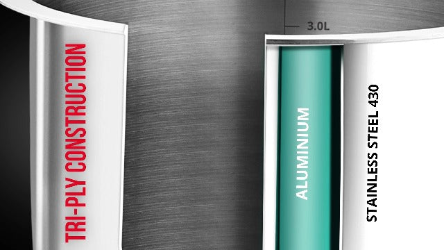 Tri-Ply Stainless Steel Construction (2.5 mm Thickness) — Durable build with superior heat control