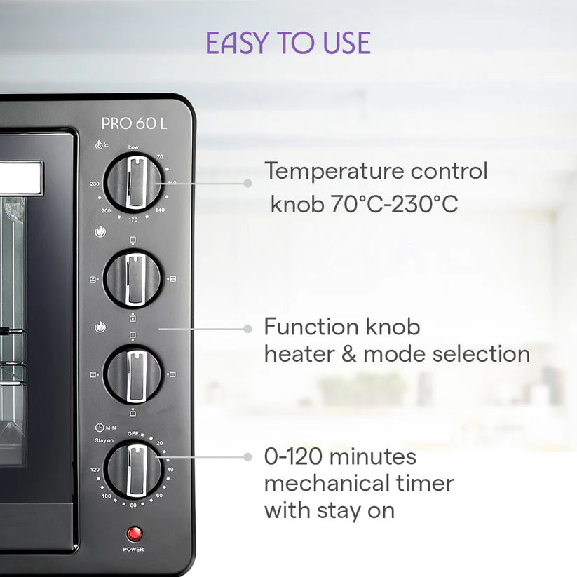 Borosil Prima 2200W 60L OTG Pro delivers professional-grade baking performance with 2200W of consistent heating power and...