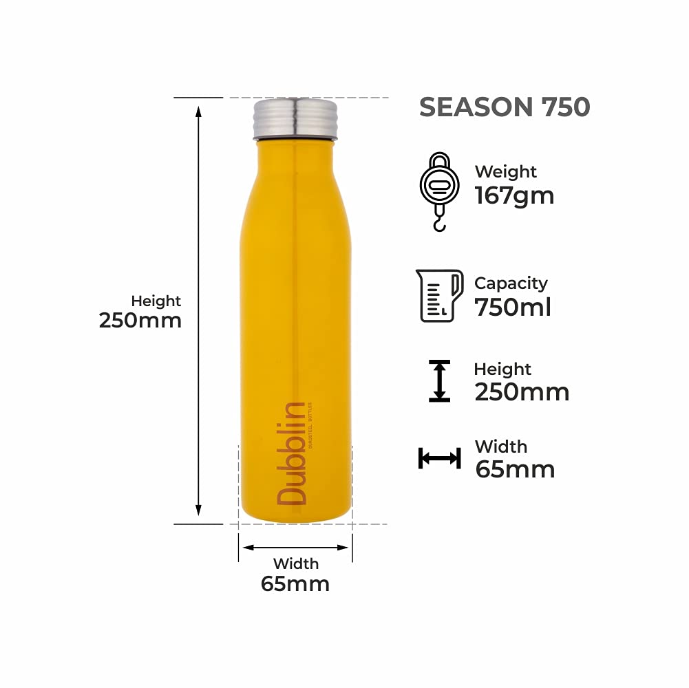 Details: Dublin Stainless steel Fridge bottle comes in a beautiful and elegant style. Compact design fits most standard fridges, drink holders, and car cup holders. The bottle is all drink safe and ideal for everyday use. The bottle is leak-proof and lightweight weight and its wide mouth opening makes it easier to clean, and it can also accommodate ice cubes if required. It is fabricated with SS 304 rust-proof stainless steel, which not only strengthens the quality but also gives resistance against rust and dirt. It is also free from odour, BPA-free free and hygienic to use. The taste and nutritive value of the drinks remain intact for a long time, making the bottles a very appropriate choice for storing beverages. The stylish exterior and color combination make this bottle a must-have.