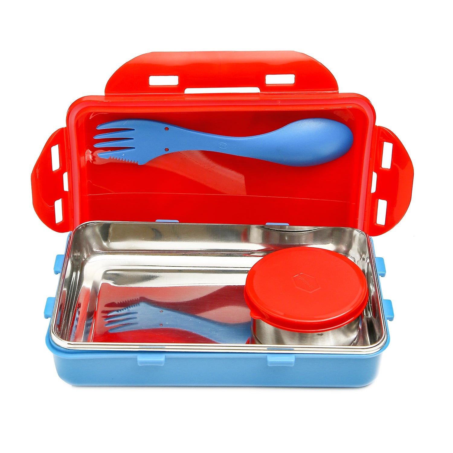 Details: Gluman Presents Gluman 3D Frozen Cartoon Character Print Stainless Steel Insulated Airtight Kids Lunch Box | School Tiffin Box with Small Bowl, Spoon and Fork |100% Food Grade| Leak Proof (Capacity: 700 Ml) The all new carry fresh stainless-steel insulated lunch box, comes with a double wall insulated box which keeps your food fresh for serving the accompaniments to make your meal tastier. Now enjoy your lunch time with Gluman carrying fresh Lunch boxes. This lunch box will keep your food, sandwiches, soups, and beverages fresh for lunch, So You Can Pack Your Kids', husband's lunches in the Morning, And It Will Stay Warm until Lunch time. and its inner surface is very smooth. Built in with a leak-proof stainless steel to prevent leakage, keep your food fresh, mess-free, and overall leave no smells in your bag!