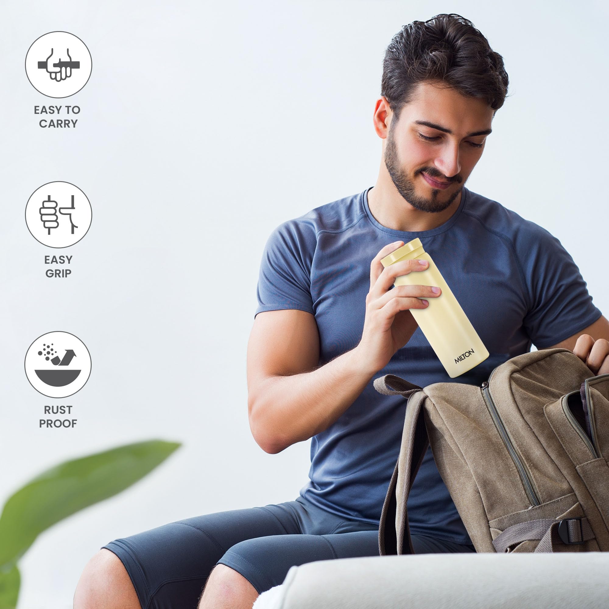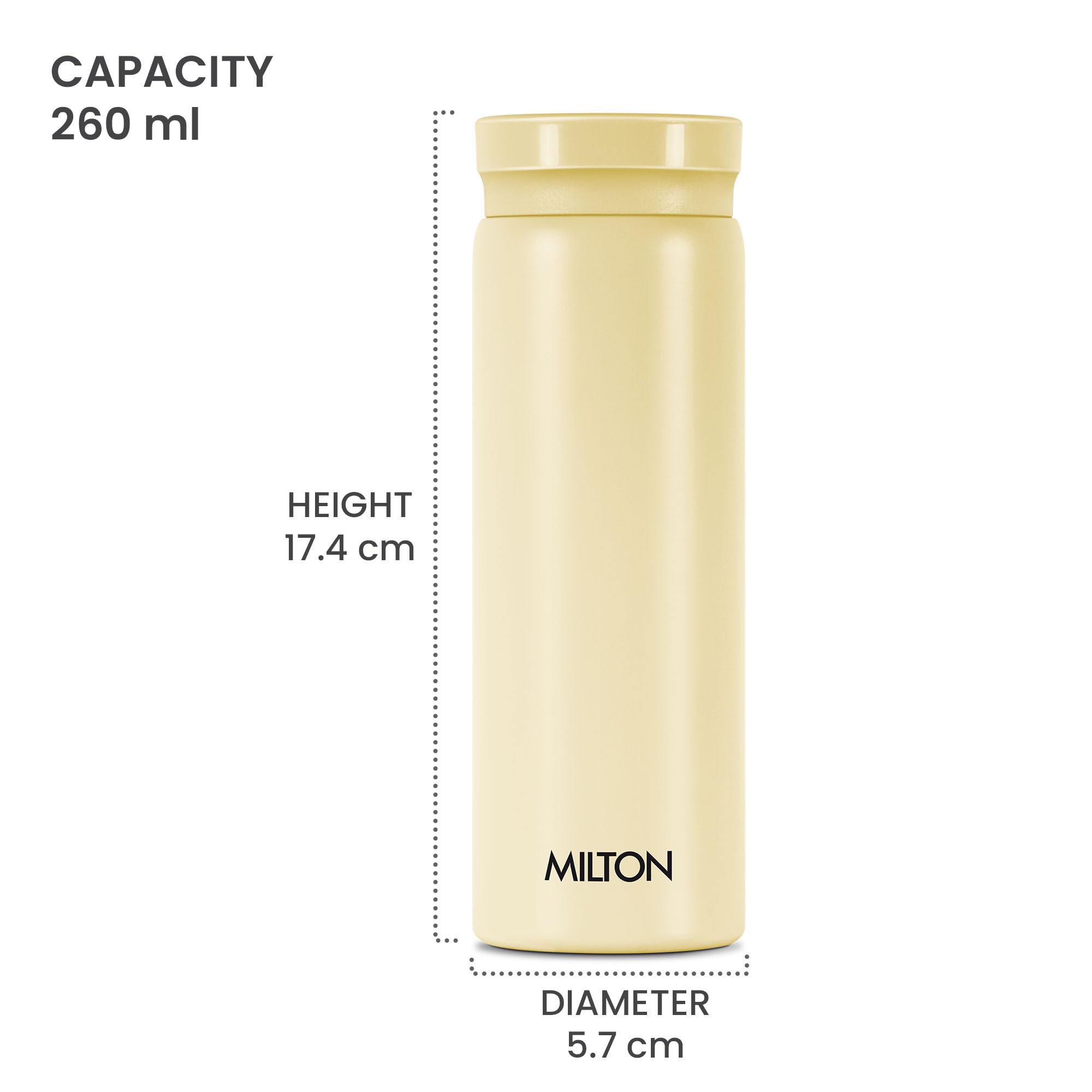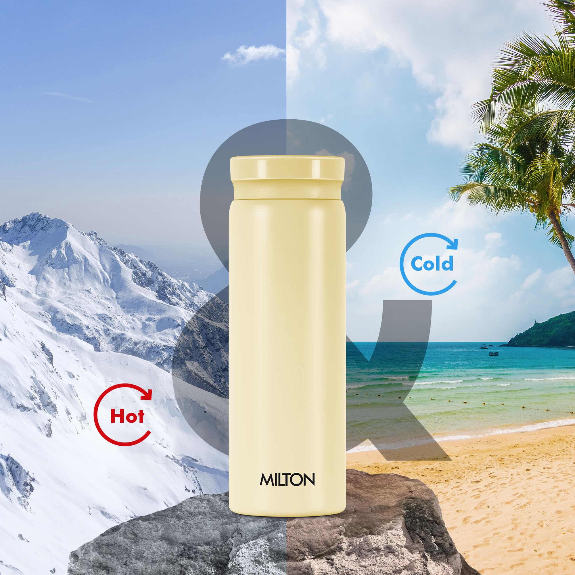 Details: Travel around the world without a care with this trendy insulated bottle from Milton. This gorgeous beverage bottle has been fabricated with stainless steel inside, making it a trustworthy companion to travel with. Its vacuum-insulated construction keeps both hot and cold beverages pleasant to consume for long durations. The leak-proof construction and hassle-free maintenance make it an easy choice for your gym, school, or travel needs. The ultimate way to quench your thirst while on the go. The sleek structure of this Milton bottle makes it ideal for carrying with you on any day trip or hike. Its slender and compact shape allows it to be slipped into the side compartments of your backpack for easy access. The leak-proof lid keeps your drink secure the whole time. There is an additional loop at the back, which can be used to carry the bottle with your hand as well. This Product Is Under one one-year warranty From The Date Of Retail Purchase Against Any Manufacturing Defects In Material And Workmanship. The Warranty Does Not Cover Damages Resulting From Accidents, Mishandling, Or Tampering With The Mechanism. Warranty Valid Against Producing Original Bill Endorsed By Seller.