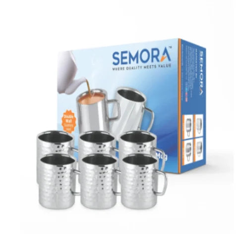 Serve your favorite hot beverages with the Semora SS Tea & Coffee Mug Apex 6pc set, crafted from premium stainless steel for lasting durability and shine. Designed with a modern apex style, these mugs are perfect for tea, coffee, or milk, making them ideal for home, office, or gifting.