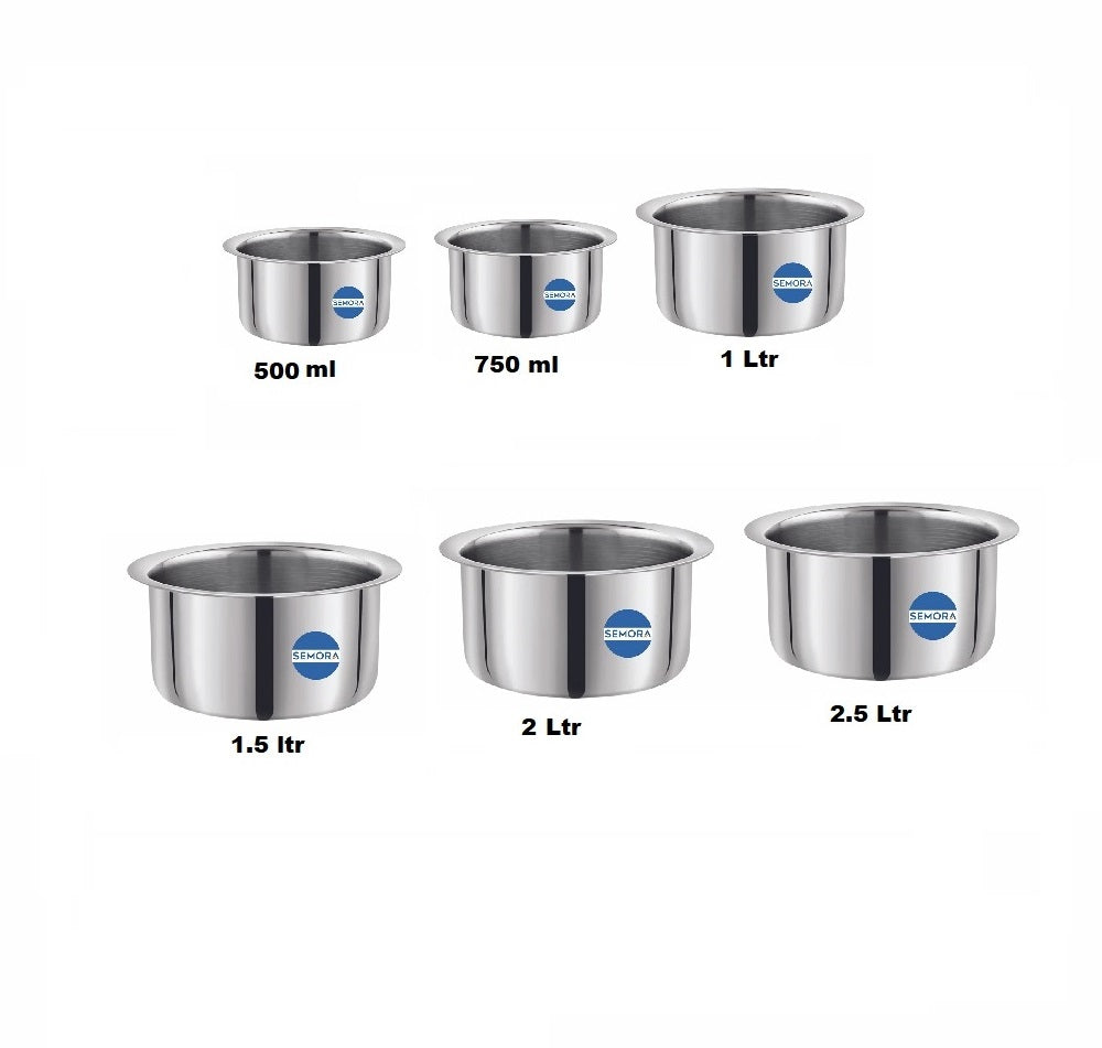Semora Stainless Steel Round Bottom Tope Set brings traditional Indian cookware into your modern kitchen. This 6-piece collection includes sizes 10 through 15, offering versatility for everyday cooking—from simmering dals to preparing curries and rice. Each tope features a sturdy round bottom design that distributes heat evenly, while durable stainless steel construction ensures long-lasting performance. Perfect for home cooks who value reliable, multi-purpose cookware that handles both traditional and contemporary recipes with ease.